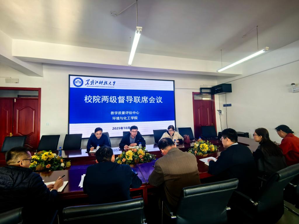 为了进一步推动审核评估整改工作,加强校院两级督导联动工作,2025年10月22日下午14:00,教学质量评估中心主任刘付刚、校督导苑延华教授等校教学督导组一行来到环境与化工学院,召开校院两级督导联席、研讨及反馈会,学院参会人员有院长熊楚安、教学副院长景介辉、各系主任、系副主任和学院督导组成员等。