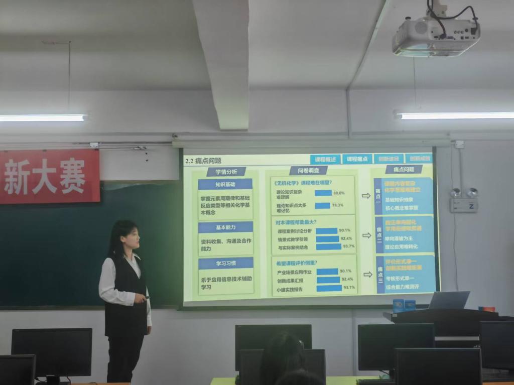 大赛前,学院各系开展系内大赛遴选工作,参与教师应不低于本系教师的30%,立足于学科专业的育人特点和要求,聚焦教学实践的“真实问题”,通过课程内容的重构、教学方法的创新、教学环境的创设、教学评价的改革等,发现和解决课程教学过程中的真实问题,构建教师倾心投入教书育人,用心强化教学能力,全心提高教学质量的良好环境,重在提升教师队伍整体教学能力。